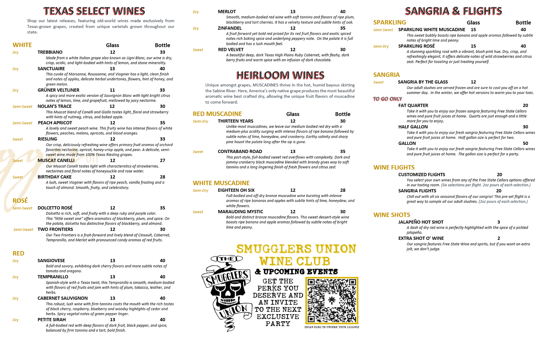 Tasting Room Menu