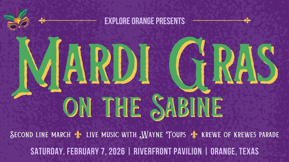 For additional information regarding Mardi Gras festivities and event schedule, please follow Explore Orange on social media, call the Explore Orange Convention and Visitors Bureau at 409.883.1011, or visit https://orangetexas.gov/407/Mardi-Gras-on-the-Sabine.