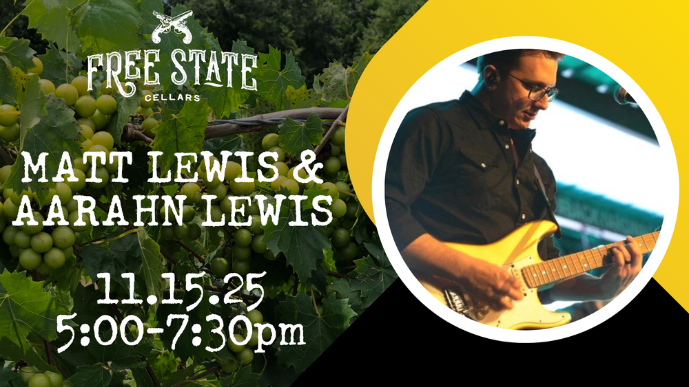 MATT LEWIS & AARAHN STEWART Date: Sat, Nov 15, 2025 Time 5:30 PM to 7:30 PM Venue: Free State Cellars Winery & Vineyard