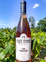 Our Two Frontiers is a fruit-forward and lively blend of Cinsault, Cabernet, Tempranillo, and Merlot with pronounced candy aromas of red fruits. Flavors of strawberry, raspberry, cherry, and pomegranate, as well as a white pepper spiciness are softened by savory qualities of plum, tobacco, and leather.